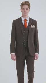 Bruin herenpak met 3-delig gilet en dubbele rij knopen