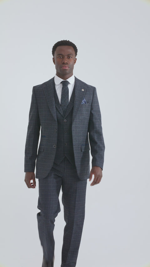 - Tweedblauw Prince of Wales marineblauw geruit pak afgewerkt in wolachtig premium zacht materiaal met een omgeslagen kraag.
