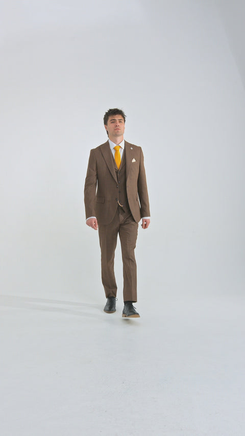 James Heren 3-delig Effen Bruin Pak met Klassieke Pasvorm