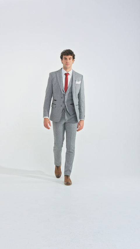 Lichtgrijs driedelig tweed visgraatpak voor heren - STZ11